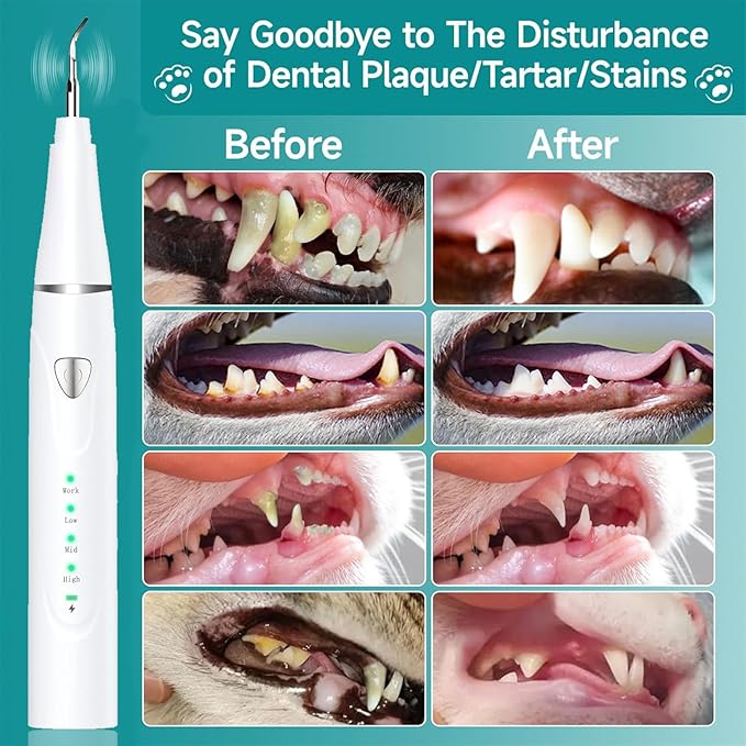 Tired of bad breath, plaque build-up, and costly dental cleanings? Our Pet Ultrasonic Tooth Cleaner uses the latest intelligent ultrasonic technology to gently yet powerfully remove plaque, tartar, and calculus from your dog or cat’s teeth.